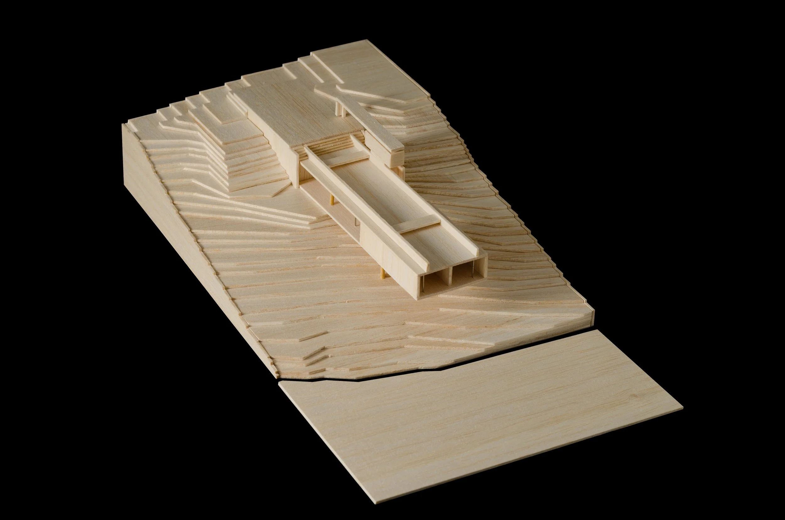 The house is virtually imperceptible. Due to the rugged local geography and the adopted pavilion-style approach, the roof transforms into a plaza that extends over the forest while also serving as ground for various activities and the enjoyment of the bucolic atmosphere of the location. The only noticeable element from the street is a modest canopy sheltering the access stairs and the water reservoir, signaling the entrance to the residence located at an elevation below -3.50 meters. The intention was for the completed work to be perfectly integrated into the landscape, as if it were part of it.